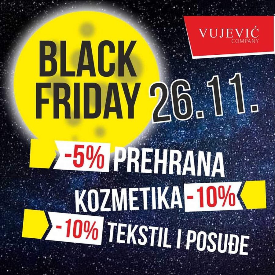 Poduzeće Vujević company za petak, 26. studeni najavilo je odlična sniženja i akcijske cijene u sklopu Crnog petka (Black friday).
