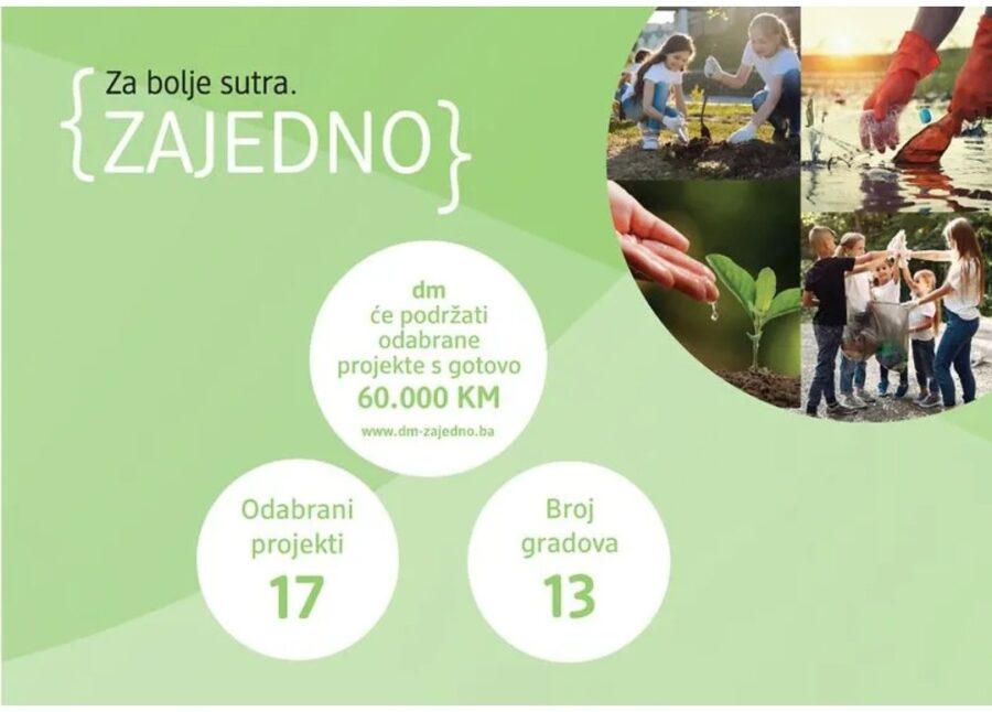 U okviru društveno odgovorne inicijative {ZAJEDNO} za bolje sutra – eco edition dm drogerie markt podržat će realizaciju ekoloških projekata koji direktno doprinose zaštiti i očuvanju okoliša s gotovo 60.000 KM ukupne vrijednosti.