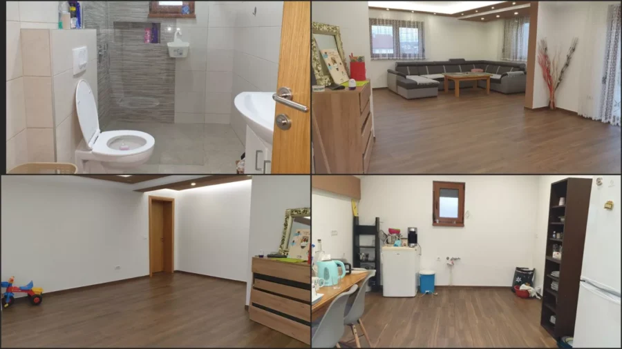 – prizemlje: tri garaže odvojene i opremljene za autoradionicu, kotlovnica u podrumu-peć na pelet,