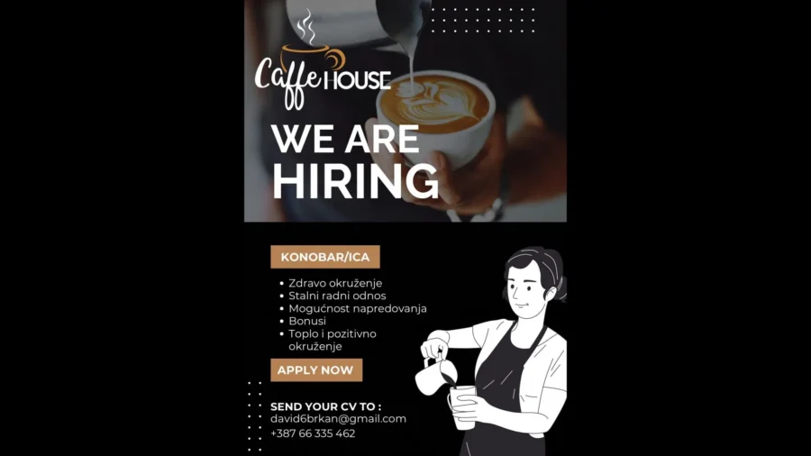 Svi zainteresirani mogu poslati svoj životopis na adresu david6brkan@gmail.com ili se javiti direktno putem telefona na broj +387 66 335 462. Prilika je otvorena dok se ne pronađe kandidat.