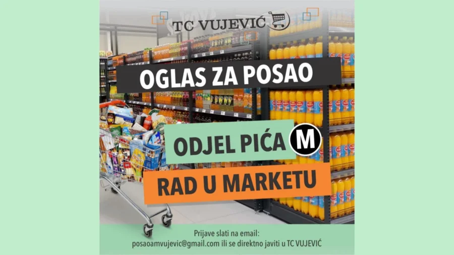 Trgovački centar Vujević objavio je natječaj za zapošljavanje novog djelatnika na odjelu pića u svom marketu.
