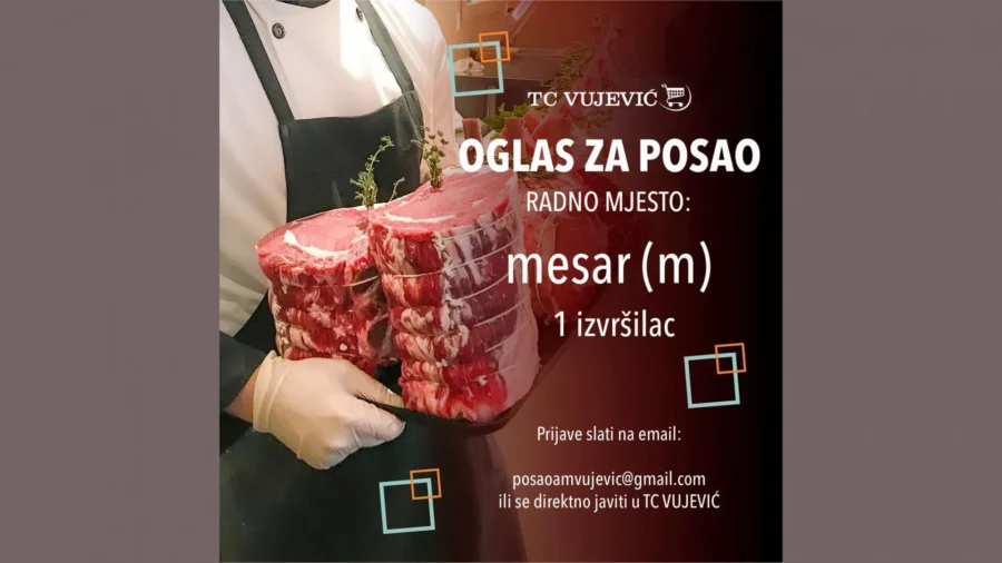 Kako navode, potreban jedan izvršitelj na poziciji: Mesar (m).