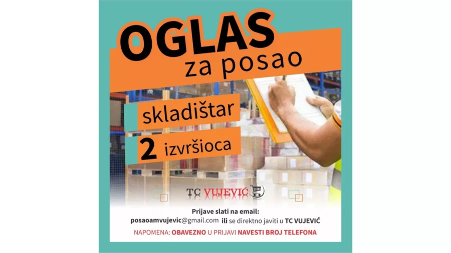 Zbog povećanog opsega posla Tržni centar Vujević objavio je da potražuje dva izvršitelja na radnom mjestu “skladištar”.