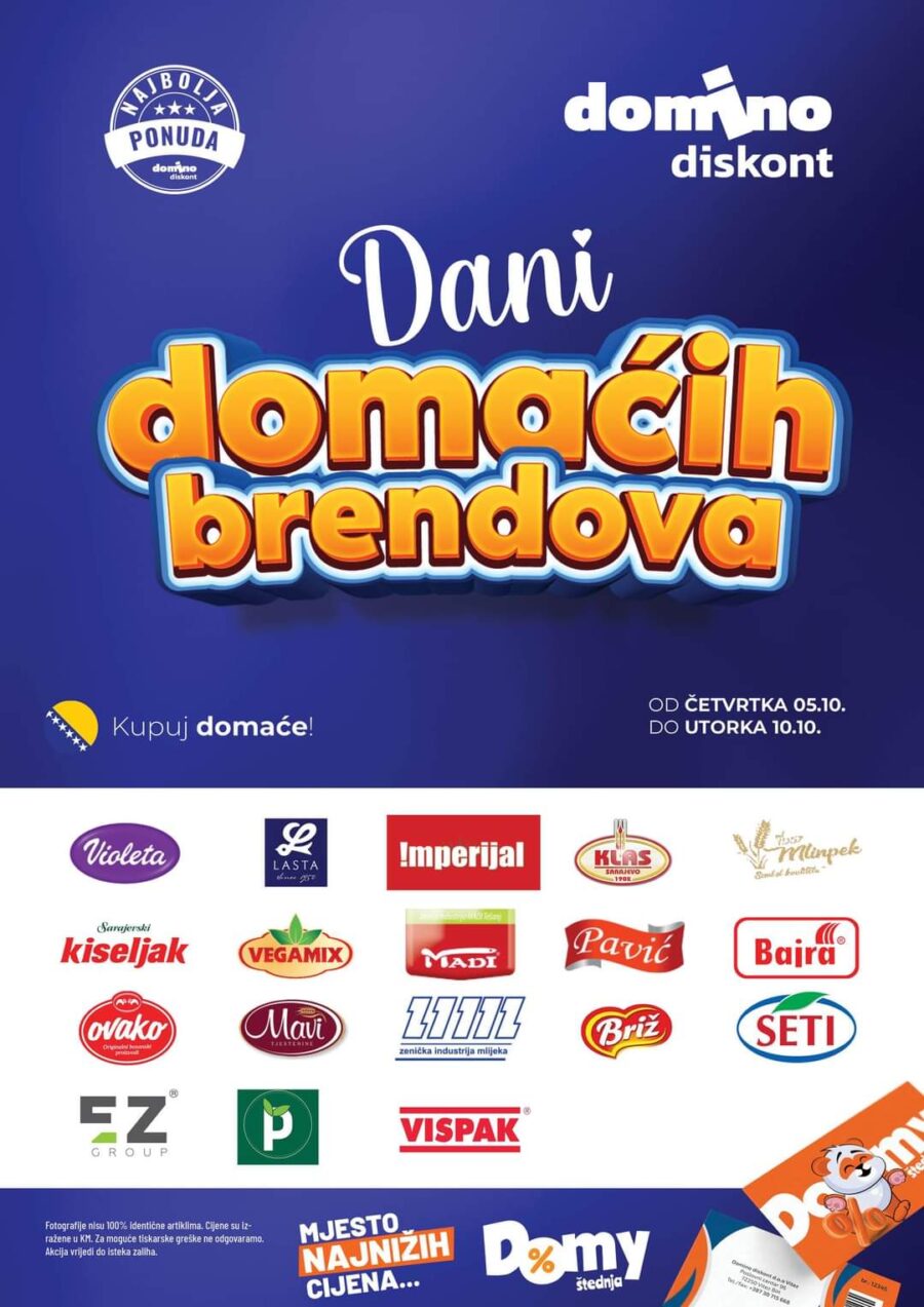 Dani domaćih brendova, najavljeni su u Domino diskontu. Jedinstvenu domaću ponudu proizvoda po najpovoljnijim cijenama potražite u Domino diskontu. Biraj najbolje, kupuj domaće!