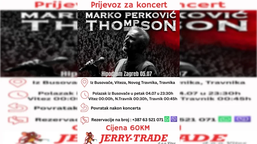 Poduzeće Jerry-Trade d.o.o. Vitez pobrinulo se da omogući putovanje na koncert svima iz srednje Bosne koji žele ići u Zagreb 5. srpnja!