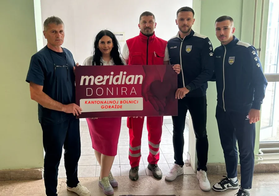 U namjeri da im olakša svakodnevni rad, Meridian je donirao opremu za zaposlene u bolnici Goražde gdje pravo na zdravstvenu zaštitu ostvaruje oko 15.000 stanovnika bosansko-podrinjske županije. O njima brine skoro 300 zaposlenih, od kojih su većina medicinske sestre i tehničari.