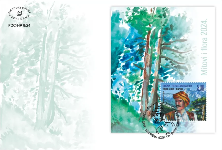 Hrvatska pošta (HP) Mostar tiskala je izdanje prigodnih poštanskih maraka „Mitovi i flora 2024.“ u bloku, a motiv je hajduk Mijat Tomić i munika, endemski bor.
