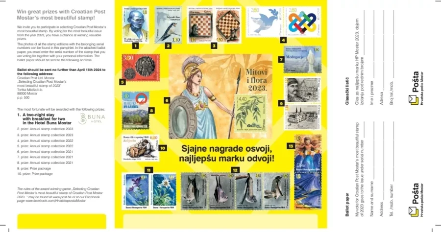 Hrvatska pošta Mostar i ove godine organizira izbor najljepše poštanske marke izdane u 2023. godini, a dobitnike očekuju odlične nagrade.