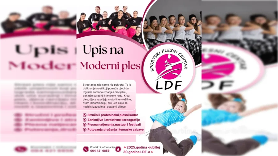 Sportski plesni centar LDF Vitez ove godine slavi vrijedan jubilej – 30 godina uspješnog djelovanja, a u povodu nove plesne sezone 2025./26. upisuje nove članove svih uzrasta. Već tri desetljeća LDF je mjesto na kojemu su generacije djece i mladih stasale kroz ples, stekle prijateljstva i oblikovale zdrave životne navike.