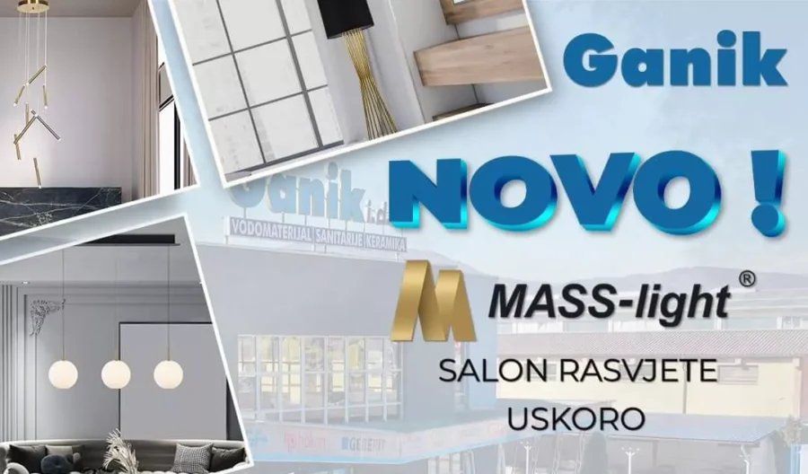 Pripremite se za najveći izbor moderne i kvalitetne rasvjete za vaš dom, koja će uskoro biti dostupna u Ganiku, na adresi Poslovni centar 96 u Vitezu.