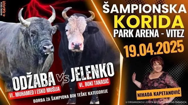 U Vitezu će ove subote, 19. travnja 2025., biti održana, kako navode ‘šampionska korida’, koja će se održati u Park Areni– kod auto pijace.