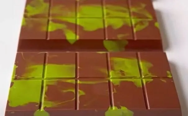 U slučaju čokolade iz Dubaija, profesor Spence istaknuo je „živopisan kontrast“ između zelene boje pistacija iznutra i smeđe čokolade izvana.