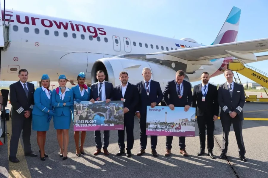 Zračna luka Mostar u ovoj godini očekuje obaranje rekorda po broju putnika, ali i kada govorimo o broju zračnih linija s nizom europskih gradova. Letom iz Düsseldorfa i službeno je obnovljena zračna veza Mostara s Njemačkom. Točnije, 150 putnika jučer je sletjelo u Mostar, čime se ovaj grad povezao s Njemačkom nakon šest godina, i to uz pomoć kompanije Eurowings, piše Klix. Što se tiče letova za Düsseldorf, oni će se odvijati od 3. do 12. svibnja i od 6. rujna do 25. listopada subotom te od 15. srpnja do 30. kolovoza utorkom i subotom. Prvi let za Stuttgart planiran je 1. srpnja, a prema službenoj stranici Eurowingsa, karte će biti dostupne po cijeni od 39,99 eura u jednom smjeru. – Danas smo zabilježili prekrasne trenutke na pisti Zračne luke Mostar – naš fotograf dočekao je sretne putnike s leta Eurowingsa iz Düsseldorfa! Atmosfera je bila odlična – osmijesi, zagrljaji, uzbuđenje i oduševljenje vidjeli su se na svakom koraku – navode iz Zračne luke Mostar. Također, ističu kako mnogi putnici nisu skrivali sreću zbog ponovnog uspostavljanja ove linije, koja im značajno olakšava putovanje kući ili u posjet Mostaru i Hercegovini.