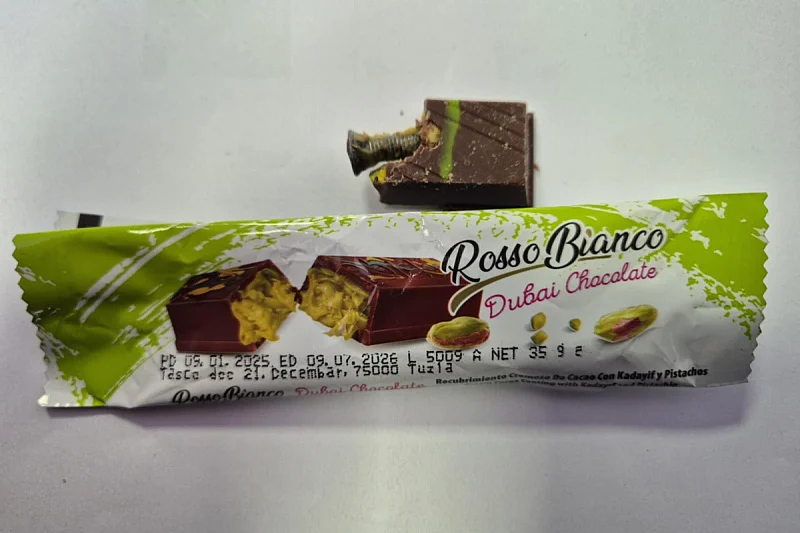 Agencija za sigurnost hrane Bosne i Hercegovine povukla je seriju Rosso Bianco Dubai čokolade jer je u jednom pakovanju, kupljenom na automatu, pronađen vijak.