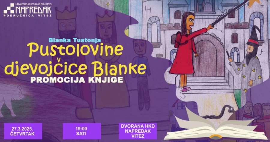 U Vitezu je najavljena promocija knjige “Pustolovine djevojčice Blanke” autorice Blanke Tustonja. Promocija će biti održana u četvrtak, 27. ožujka 2025. godine, s početkom u 19:00 sati u dvorani HKD Napretka.
