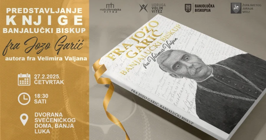 U Banjoj Luci će 27. veljače 2025. godine, s početkom u 18:30 sati, u Dvorani svećeničkog doma, biti predstavljena knjiga “Fra Jozo Garić – banjalučki biskup” autora prof. dr. fra Velimira Valjana.