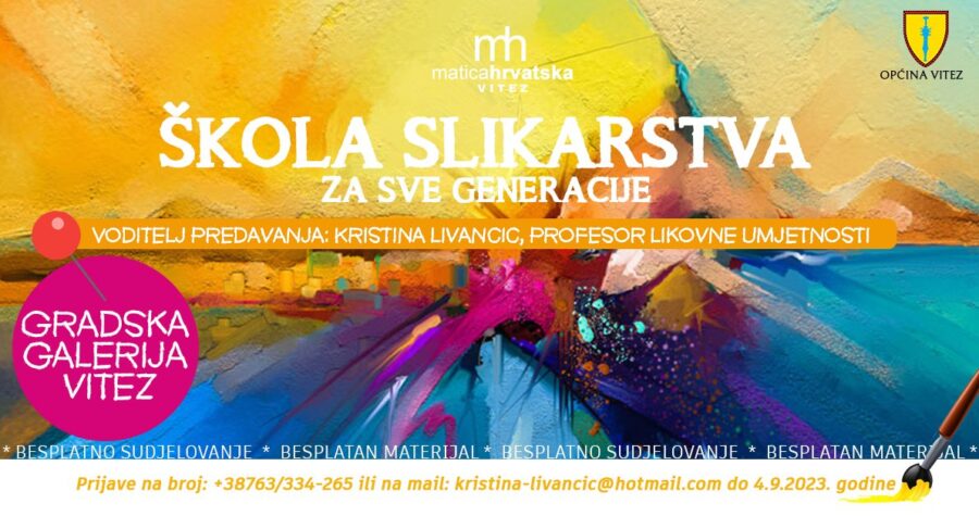 “Možete se prijaviti i postati dio male umjetničke zajednice, koja će se okupljati dva puta tjedno po dva školska sata, gdje će učiti, družiti se i razvijati svoju kreativnost”, navode iz Matice hrvatske Vitez.