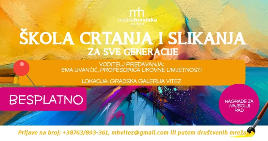 „Planirano je da se tečaj odvija dva puta tjedno, u terminima prema dogovoru s polaznicima, koji mogu biti oni koji nemaju predznanja o slikarstvu ali i osobe koje žele svoja znanja nadograditi. Prijavite se i postanite dio umjetničke zajednice koja nudi nadogradnju znanja, sudjelovanje na izložbama i kolonijama“, navode iz Matice hrvatske Vitez.