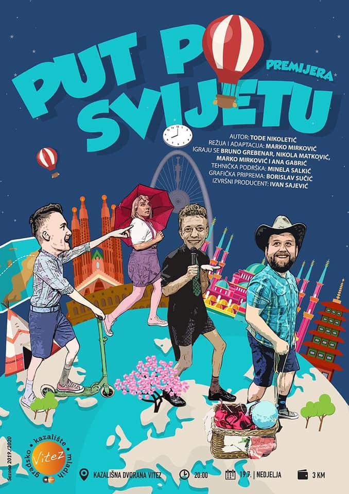Nova premijera predstave “Put po svijetu” Gradskog kazališta mladih Vitez, sigurni smo osvojit će mnoga dječja srca. Predstava je namijenjena za djecu školskog uzrasta, ali svakako će i svi ostali moći uživati u ovom avanturističkom kazališnom činu. Premijerno se igra u nedjelju, 19. srpnja, s početkom u 20h čime se nastavljaju 5. Dani hrvatskog kazališta u Vitezu.