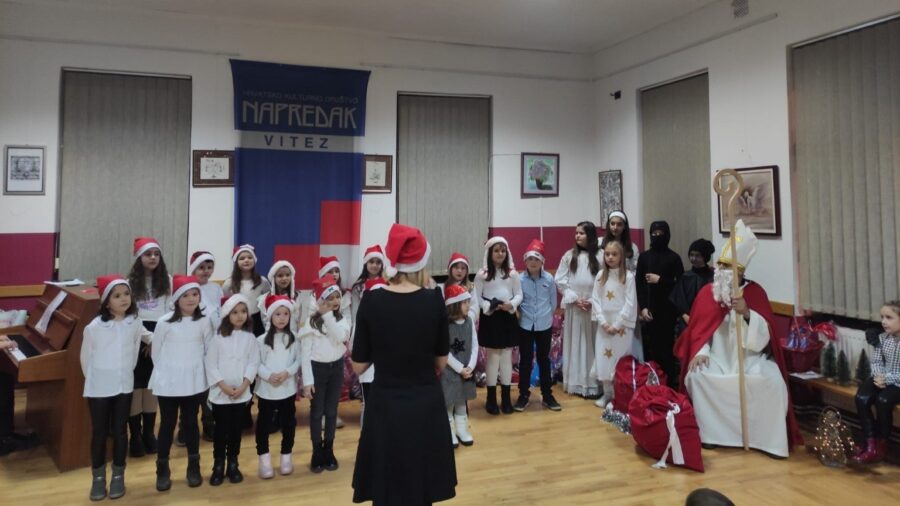 Na početku programa se pojavio sveti Nikola kojeg su burnim pljeskom pozdravili mali Vitežani i njihovi roditelji. Svoju dobrodošlicu ovom najdražem gostu su uputili najmlađi folkloraši pod vodstvom Ane Mišković koji su recitirali svetom Nikoli, dok je Napretkov Dječji zbor pod vodstvom profesorice Željke Zekić, a uz glasovirsku suradnju profesore Ivane Kuzmanović otpjevao dvije pjesmice.