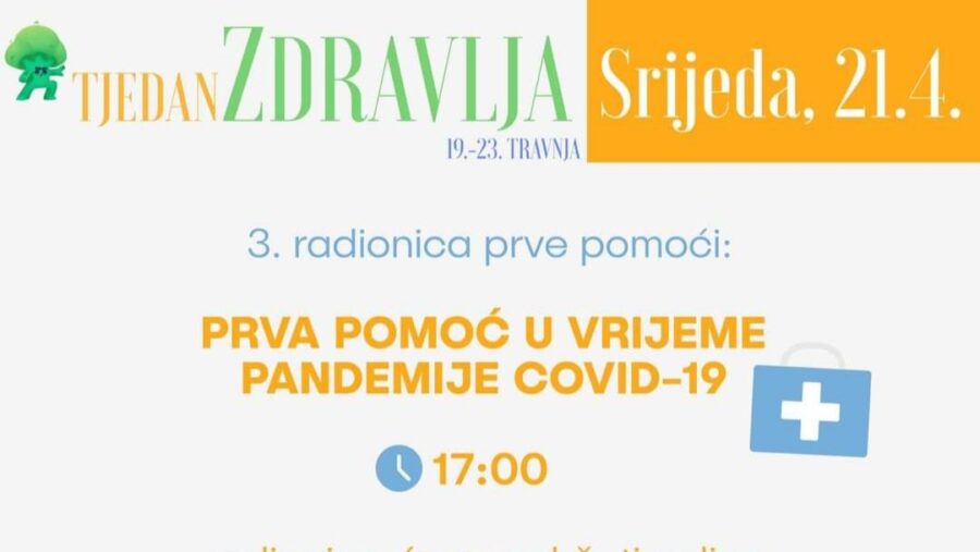 U trećem danu Tjedna zdravlja, Studentska sekcija za hitnu medicinu održati će radionicu prve pomoći pod nazivom „Prva pomoć u vrijeme pandemije COVID-19“. Radionica počinje u 17,00 sati, a možete je pratiti na ovoj poveznici: https://youtu.be/_1hedqJV4S8, objavljeno je na Fb profilu Studentskog zbora Sveučilišta u Mostaru.