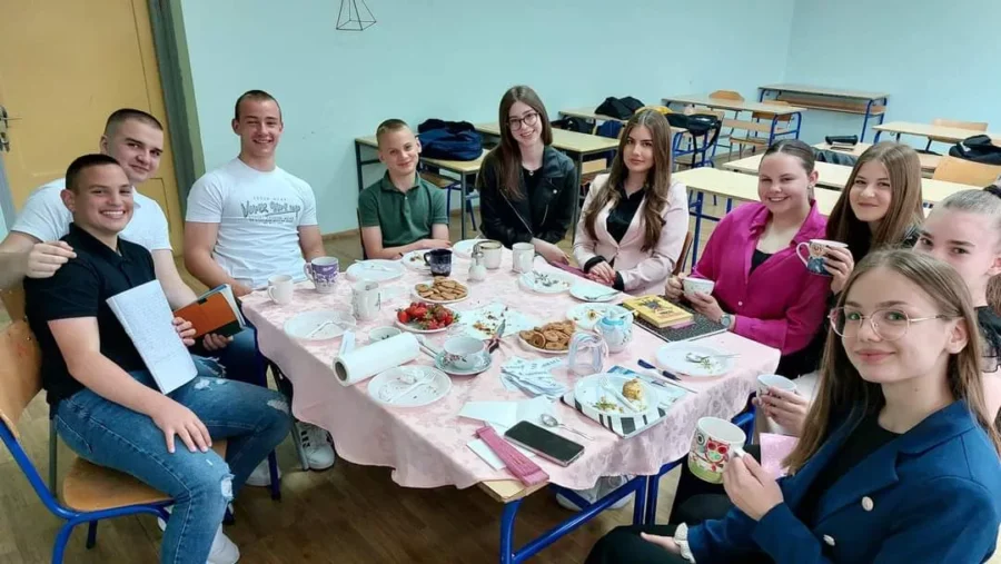 Uz šalicu voćnog čaja, neizostavnih čajnih kolutića, toplog kuglofa i svježih jagoda, razgovor o romanu “Životinjska farma” Georga Orwella tekao više nego ugodno. Da su učenici bili zadovoljni potvrđuje njihova molba da ovakvih sati bude više te činjenica da nisu željeli otići na mali odmor, istaknuli su iz Srednje škole Vitez, čiji sadržaj detaljnije možete vidjeti ovdje.