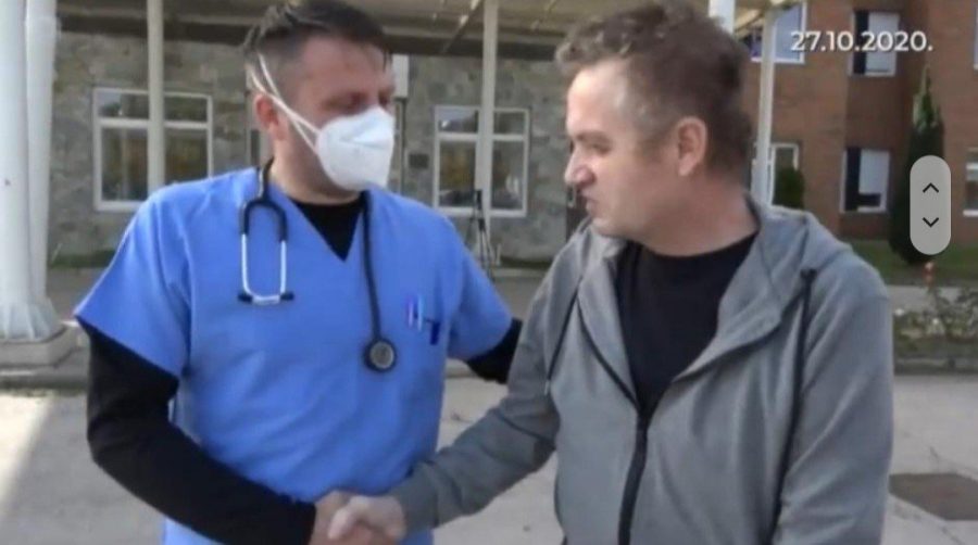 Iako teškoga i nesigurnog koraka zbog tjelesne slabosti, pedesetogodišnji Anđelić je, s osmijehom na licu, u pratnji obitelji napustio Hrvatsku bolnicu Fra Mato Nikolić u Novoj Biloj.