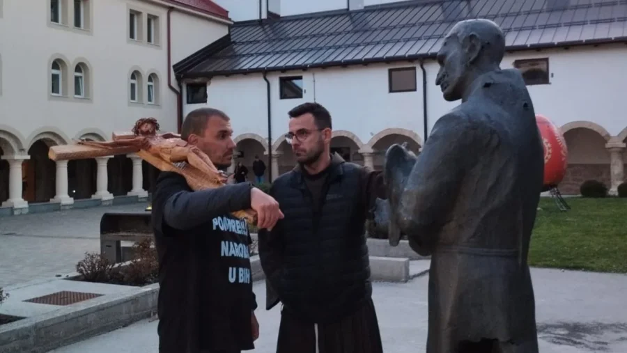 U ozračju duhovne sabranosti, zajedništva i molitve, Josip je zajedno s okupljenima sudjelovao na svetoj misi u franjevačkom samostanu sv. Franje Asiškog. Svetu misu predvodio je fra Davor Petrović, gvardijan samostana u Gučoj Gori, u koncelebraciji s još nekoliko svećenika. Liturgijsko slavlje proteklo je u znaku molitve za mir, pomirenje i oprost – vrijednosti koje Josip Jelinić neumorno širi svojim hodočašćem kroz Bosnu i Hercegovinu.