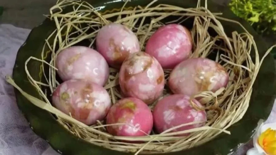 Potrebno: Jaja, ljuske crnog, smeđeg i bijelog luka, sirće, ulje, najlon čarapa, konac, crvena prehrambena boja i škare. Priprema: Isijecite ljuske luka na sitne komade i očistite pečat s jaja pomoću sirćeta. Nakvasite jaja u vodi pa ih uvaljajte u pripremljene ljuske luka. Umotajte svako jaje u komad najlon čarape i čvrsto zavežite koncem. Pripremite posudu s vodom, dodajte dvije kašike sirćeta i crvenu prehrambenu boju. Stavite jaja u hladnu vodu i kuhajte ih osam do 10 minuta. Nakon kuhanja premažite jaja uljem da dobiju lijep sjaj. Mramorna jaja su savršen način da dodate šarm i moderni dašak vašoj uskrsnoj dekoraciji. Ova tehnika je jednostavna, ali efekt je nevjerojatan. Ne samo da ćete oduševiti svoje goste, već ćete se i zabaviti dok kreirate svoja prelijepa, jedinstvena jaja. Neka ove godine vaša dekoracija za Uskrs bude elegantna, sofisticirana i prava umjetnost.