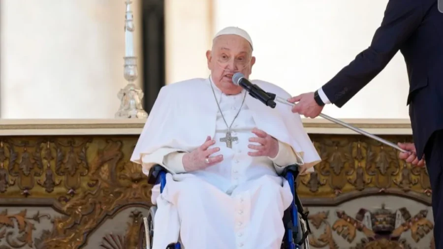 Ovaj 88-godišnji poglavar Rimokatoličke crkve proveo je pet tjedana na liječenju u rimskoj bolnici nakon što je obolio od obostrane upale pluća. Unatoč nedavnom boravku u bolnici, tokom kojeg je nekoliko puta bio u kritičnom stanju, papa Franjo je viđen kako se u invalidskim kolicima spušta niz rampu na Trgu svetog Petra u Vatikanu. Tokom svog prvog pravog javnog pojavljivanja, nakon što je nastavio oporavak van bolnice, papa je uputio kratku poruku sa bine. Okupljena masa na Trgu svetog Petra gromoglasno je pozdravila papu prilikom njegovog prvog službenog pojavljivanja u javnosti.