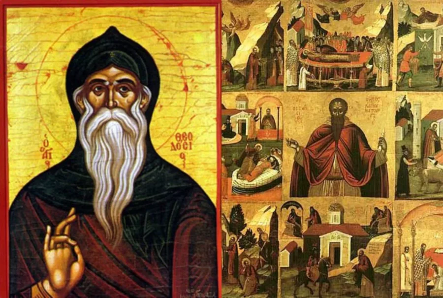 Sveti Teodozije rodio se u Kapadociji u Maloj Aziji oko 424. godine. Kao mladić u crkvi je vršio službu čitača (lektora). On je tu službu shvatio najozbiljnije pa je to činio s razumijevanjem onoga što čita. Osobito su ga dirnule one Isusove riječi, da će svatko tko ostavi oca, majku, braću i sestre, poradi evanđelja, postići mnogo više i na koncu život vječni.