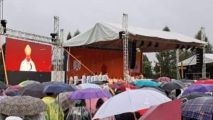 „Dragi mladi prijatelji, i mi smo danas okupljeni, guramo se oko Isusa, stisnuti pod ovom kišom. Oko Isusa, svoga učitelja da bismo slušali njegovu riječ“, kazao je biskup Huzjak istaknuvši da Isus oslobađa straha koji koči čovjeka te nudi snagu vjere koja pomaže nositi se sa svim strahovima koje pojedinac može imati.