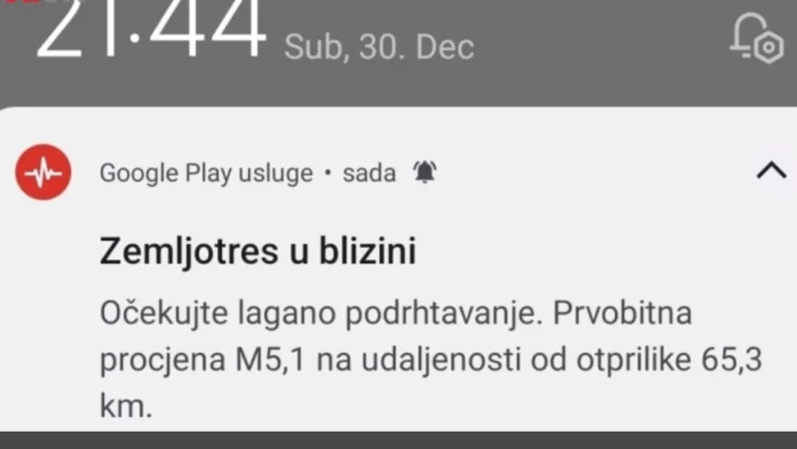 Neposredno prije potresa koji je večeras pogodio Bosnu i Hercegovinu, mnogi korisnici pametnih telefona koje pokreće Android, dobili su važnu obavijest.