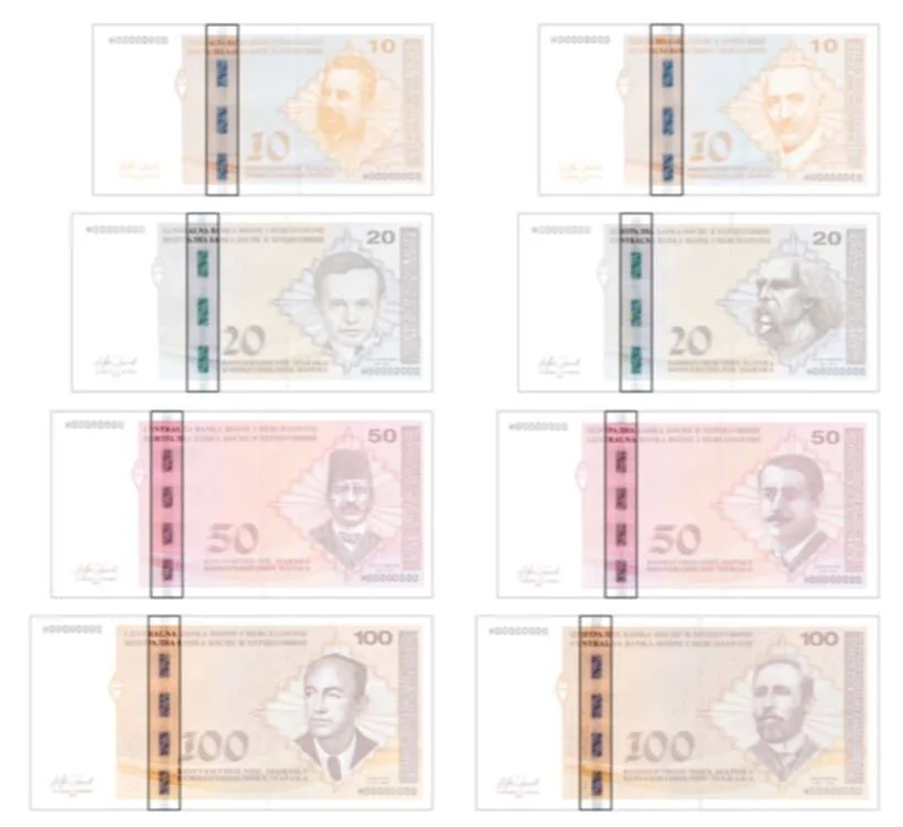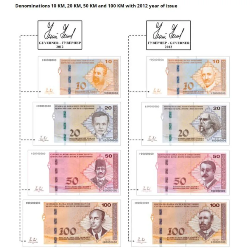 Zamjenu ovih novčanica u 2025. godini će vršiti komercijalne banke. Novčanice apoena 10 KM, 20 KM, 50 KM i 100 KM, izdanja 2012., 2017., 2019. i 2024., kao i oba izdanja novčanica apoena 200 KM ostaju u opticaju, a osim po godini izdavanja jednostavno ih je razlikovati po uspravnoj mikrooptičkoj zaštitnoj niti “Motion™”.