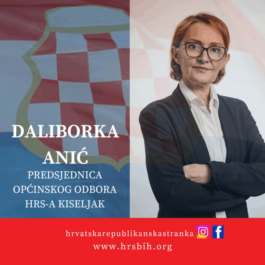 Željela bi se zahvaliti svom odboru na povjerenju i imenovanju. Čestitati izabranom zamjeniku i tajnici. Nadam se da će naš rad biti na korist našoj Općini kao i svim stanovnicima. Najavljujem da je Odbor raditi i djelovati intenzivno cijelo ovo vrijeme do izbora, ne samo u izbornoj kampanji onih 30 dana. Planiramo se maksimalno posvetiti direktnoj komunikaciji s građanima. Mislimo da je to najbolji način da čujemo njihove probleme i potrebe, te da shodno s njima djelujemo i kreiramo svoje politike. Naravno da očekujem od Odbora da mi pomogne u kreiranju politika i dinamici. Ovim putem već možemo najaviti da traju intenzivne pripreme na organiziranju javne tribine na kojoj ćemo govoriti o brojnim mogućnostima koje Kiseljak nudi za bolju budućnost. Nadam se da će cijeli naš rad biti na korist Kiseljaka i njegovog stanovništva, kao i šire društvene zajednice i narodu hrvatskom!” poručila je nakon izbora predsjednica Općinskog odbora HRS-a Kiseljak Daliborka Anić.