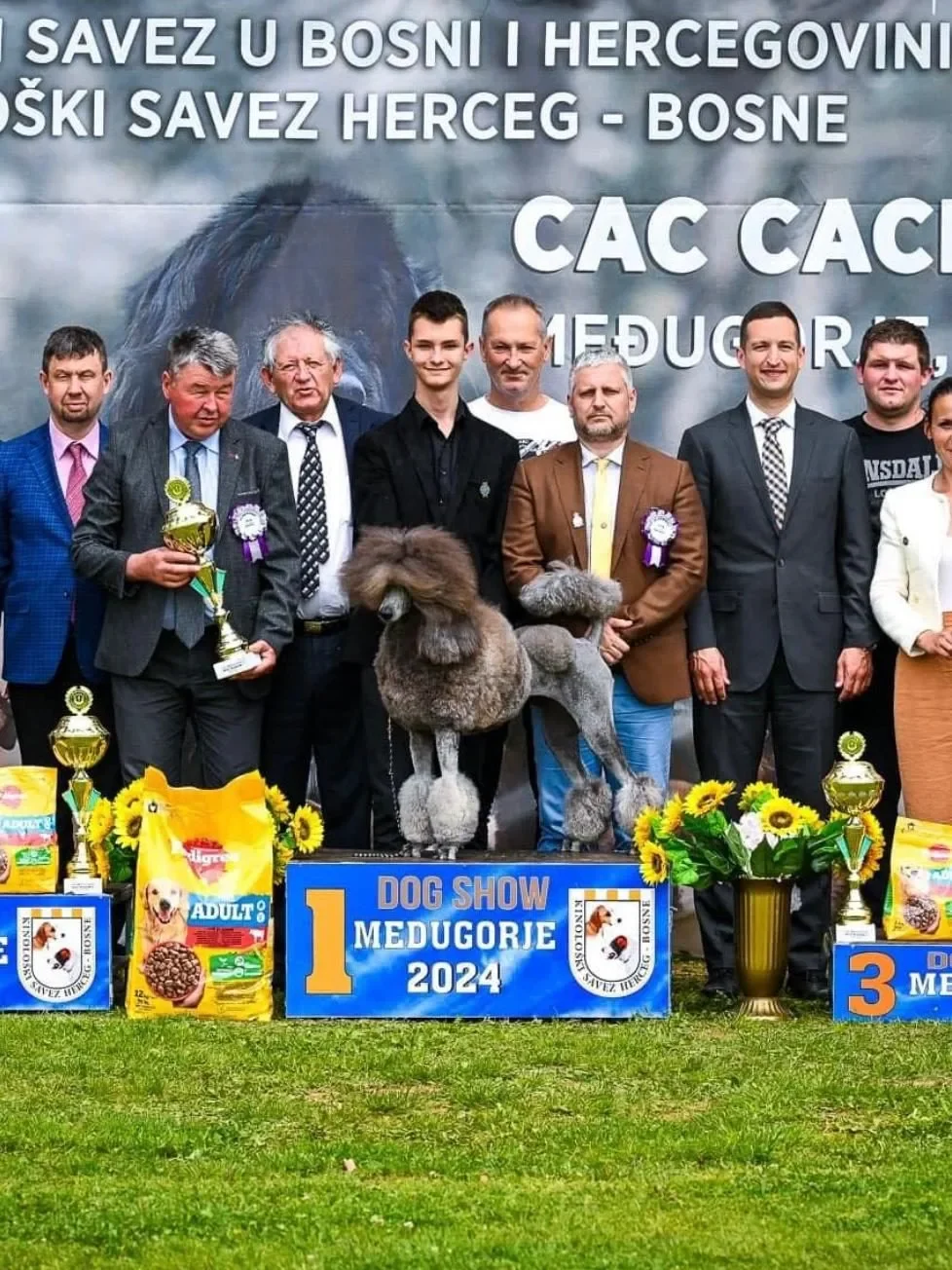 VITEŠKI.BA: Ostvaruješ zapažene rezultate na izložbama u zemljama regije. Koji ti je nastup ili nagrada najdraža i zašto? Najposebniji mi je nastup bio na europskoj izložbi pasa u Brnu (Češka), gdje sam predstavljao Bosnu i Hercegovinu u junior handlingu. Izlagao sam prekrasnog samojeda, savršenog partnera koji mi je omogućio da našu državu predstavim u najboljem svjetlu. Također, na toj izložbi sam s Bobijem, bosanskohercegovačkim oštrodlakim goničem, ušao u TOP 6 pasa VI. FCI skupine, što je ogroman uspjeh za našu autohtonu pasminu. Ponosan sam i na titule dva svjetska šampiona za 2024., dva europska šampiona za 2024. te jednog europskog šampiona za 2025.