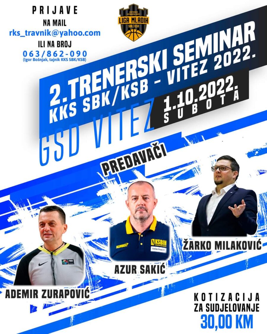 Županijski košarkaški savez SBŽ/ŽSB u nedostatku kvalitetnih seminara namijenjenih ponajviše košarkaškim trenerima koji rade s mlađim uzrasnim kategorijama, odlučio se za organizaciju 2. TRENERSKOG SEMINARA ŽKS SBŽ/ŽSB – VITEZ 2022., a s posebnom željom da doprinesU dodatnoj edukaciji trenera kako na području ŽSB, tako i šire.