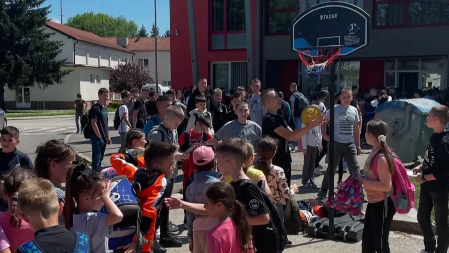 Prvo je na rasporedu bio posjet dvjema Osnovnim školama , uz podijeljene letke dijelili su i nagrade u vidu lopti, majica, nadmajic, za postignute koševe .
