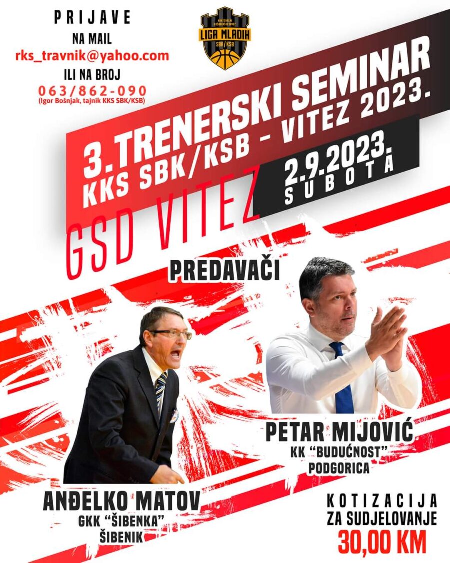 Treći Trenerski seminar KKS SBŽ –VITEZ 2023. će se održati u subotu 2. rujna 2023., u GSD Vitez s početkom u 9.45 sati.