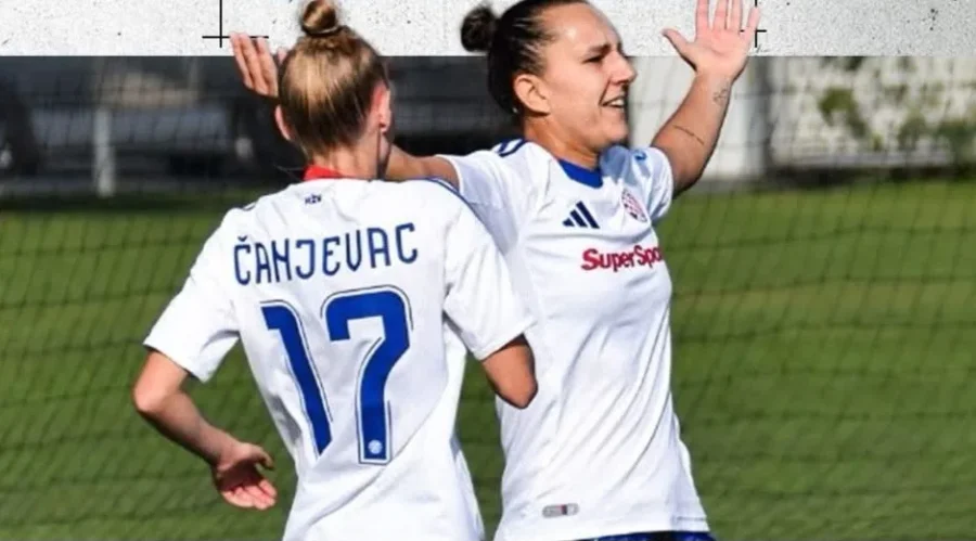 Nogometašice Hajduka upisale su uvjerljivu pobjedu u drugom kolu Prve HNL-Ž. Na gostovanju protiv aktualnih prvakinja ŽNK Agrama slavile su s visokih 4:0, a apsolutna junakinja utakmice bila je Andrea Grebenar, Vitežanka iz Malog Mošunja, koja je već u prvom poluvremenu postigla hat-trick (3’, 5’, 25’). Četvrti pogodak dodala je Maja Čanjevac u 67. minuti.