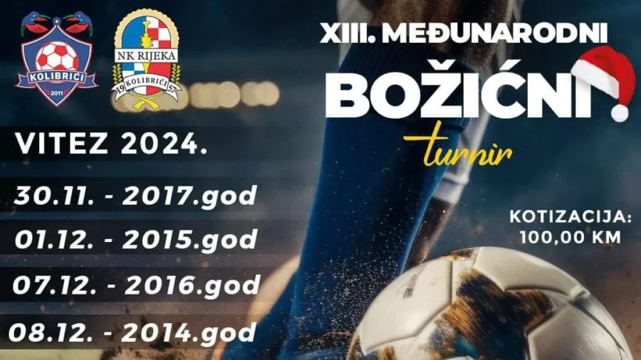 I ove godine trinaesti put škola nogometa Nogometni klub Rijeka Kolibrići organizira tradicionalni međunarodni Božićni nogometni turnir Vitez 2024.
