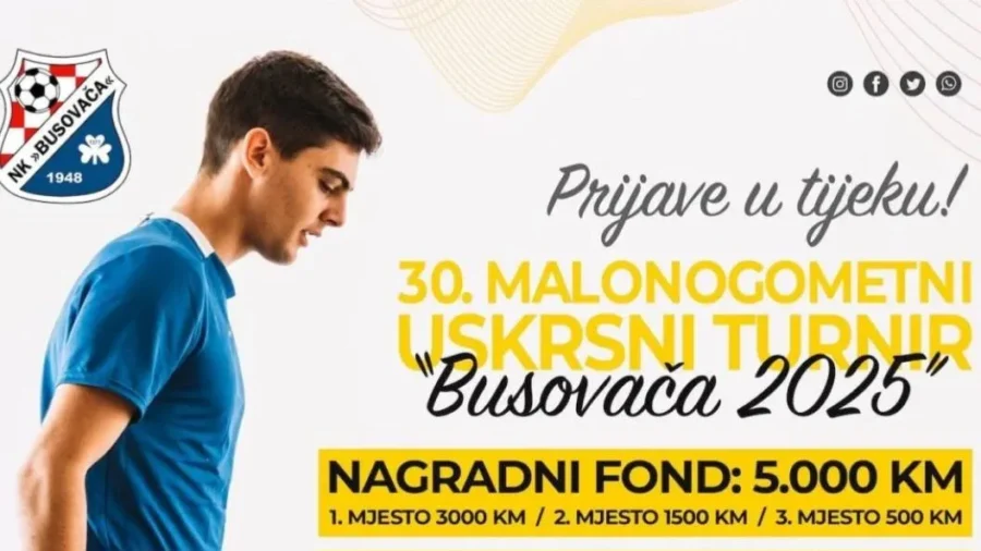 Ovo nije samo turnir – ovo je sportski događaj koji već tri desetljeća okuplja najbolje igrače i ljubitelje nogometa iz cijele regije. Ne propustite priliku sudjelovati u jednom od najvažnijih sportskih događaja u Busovači! Prijavite svoju ekipu, podržite favorite i uživajte u vrhunskom nogometu! Vidimo se na parketu – neka najbolja ekipa osvoji titulu, poručili su organizatori.