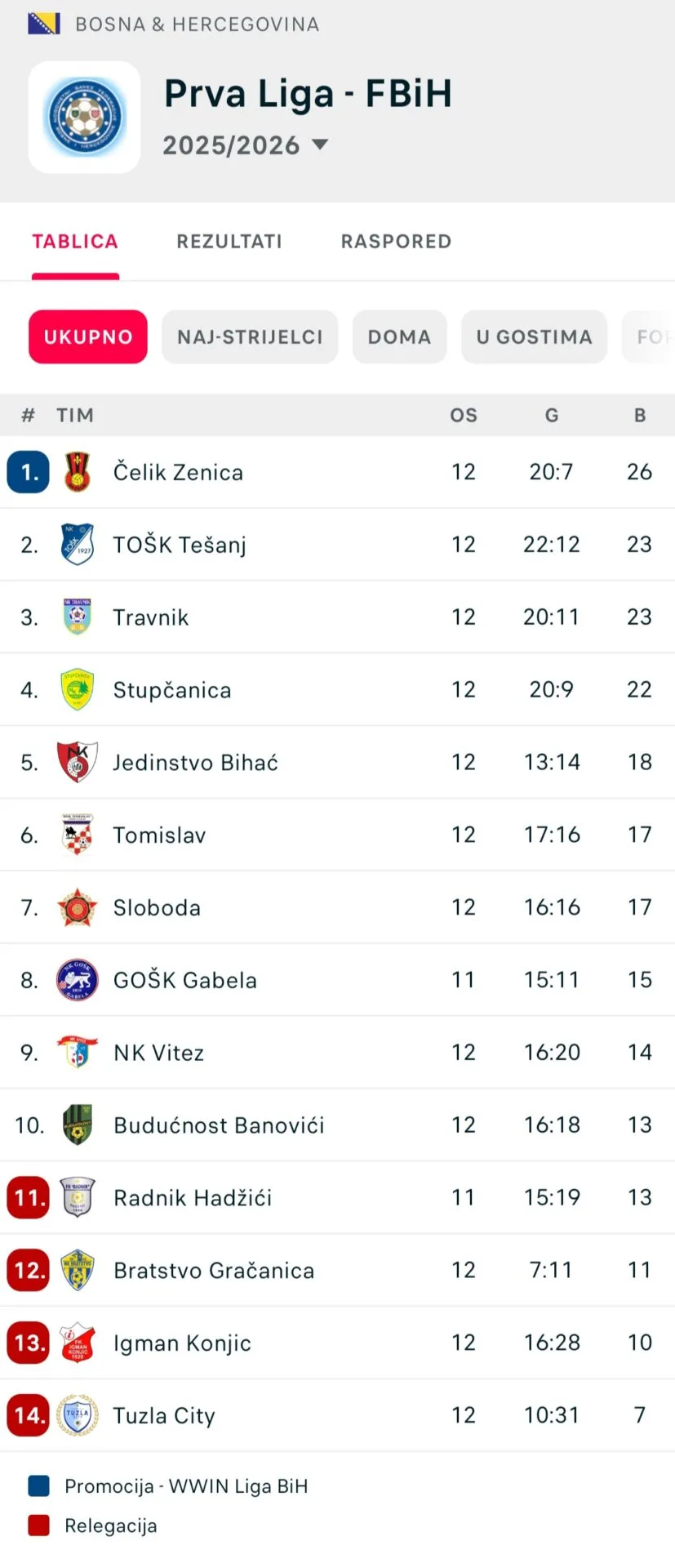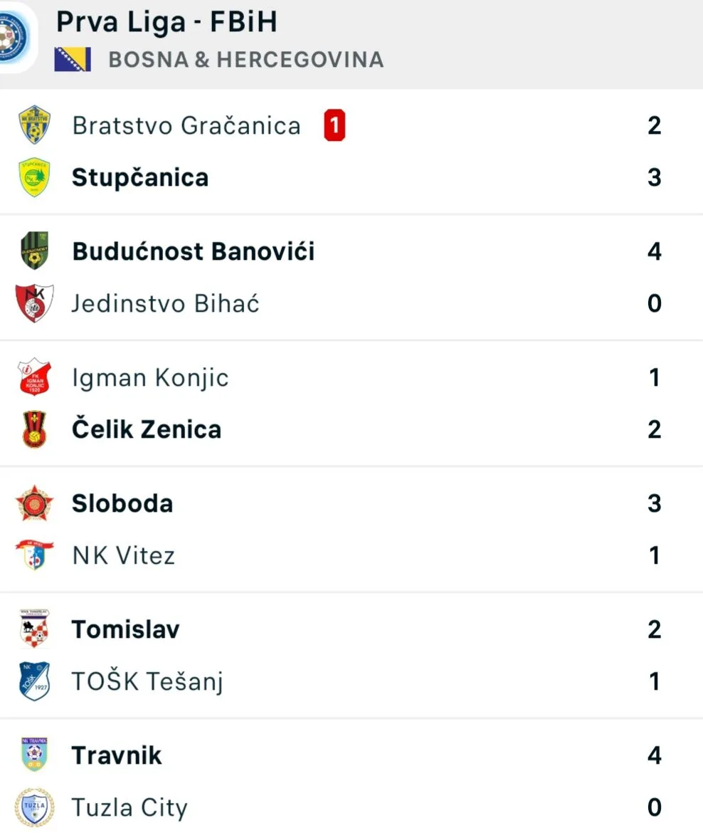 U nastavku dostavljamo rezultate današnjih utakmica kao i stanje na prvenstvenoj ljestvici: