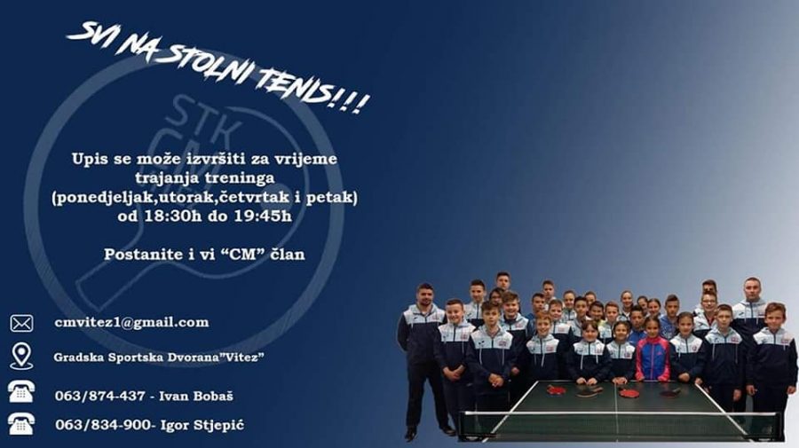 Stonoteniski klub “CM”, jedini sportski kolektiv iz Viteza koji se natječe u Premijer ligi Bosne i Hercegovine, započeo je s upisom novih članova.