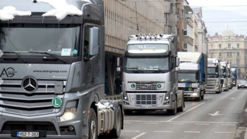 Vozači kamiona, autoprijevoznici, danas su u Sarajevu organizirali prosvjednu vožnju zbog poteškoća koje imaju u radu te stalnog poskupljenja goriva.