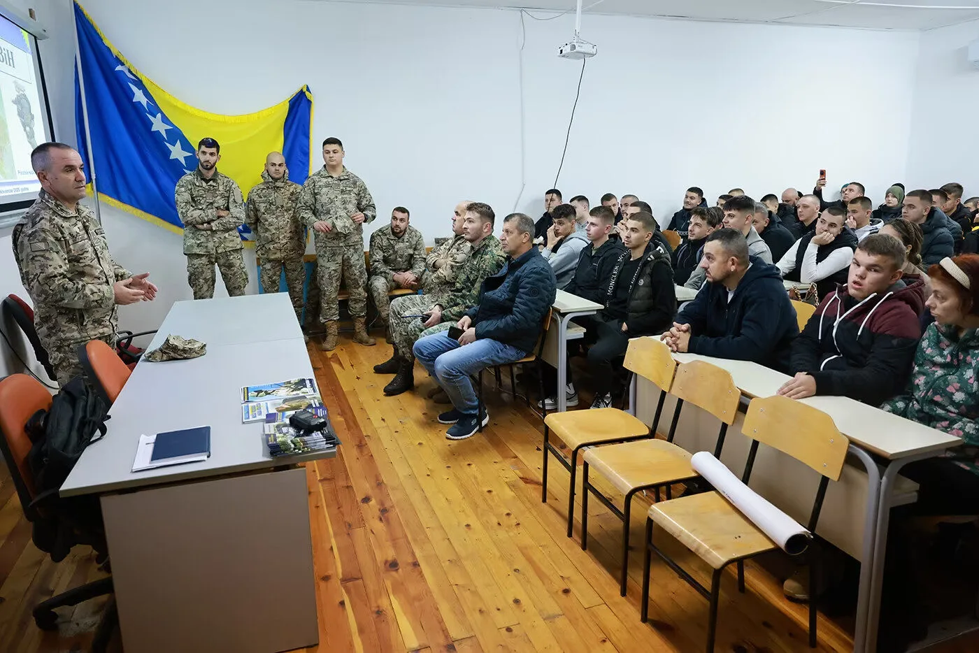 Poručnici Oružanih snaga BiH, koji su nedavno završili obuku i trenutno služe u postrojbama OSBiH, održali su učenicima prigodna predavanja o mogućnostima unovačenja i karijere u vojsci. Govorili su o uvjetima prijema, prednostima rada u Oružanim snagama te mogućnostima profesionalnog napredovanja.