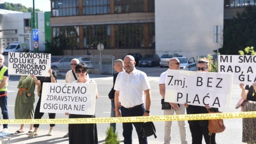 Ispred zgrade Vlade FBiH danas je organiziran štrajk upozorenja Sindikalne organizacije Agencije za privatizaciju FBiH čiji radnici sedam mjeseci nisu primili plaću.