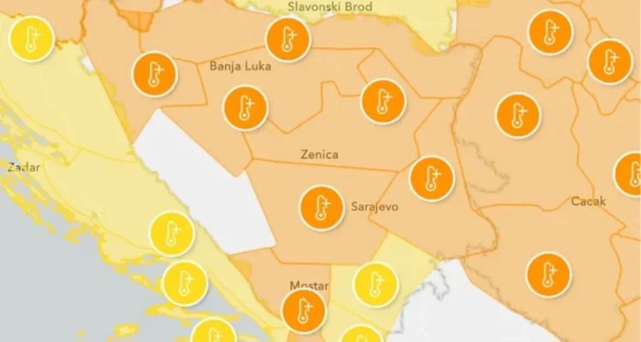 Federalni hidrometeorološki zavod izdao je narančasto upozorenje zbog visokih dnevnih temperatura za teritoriju cijele Bosne i Hercegovine.