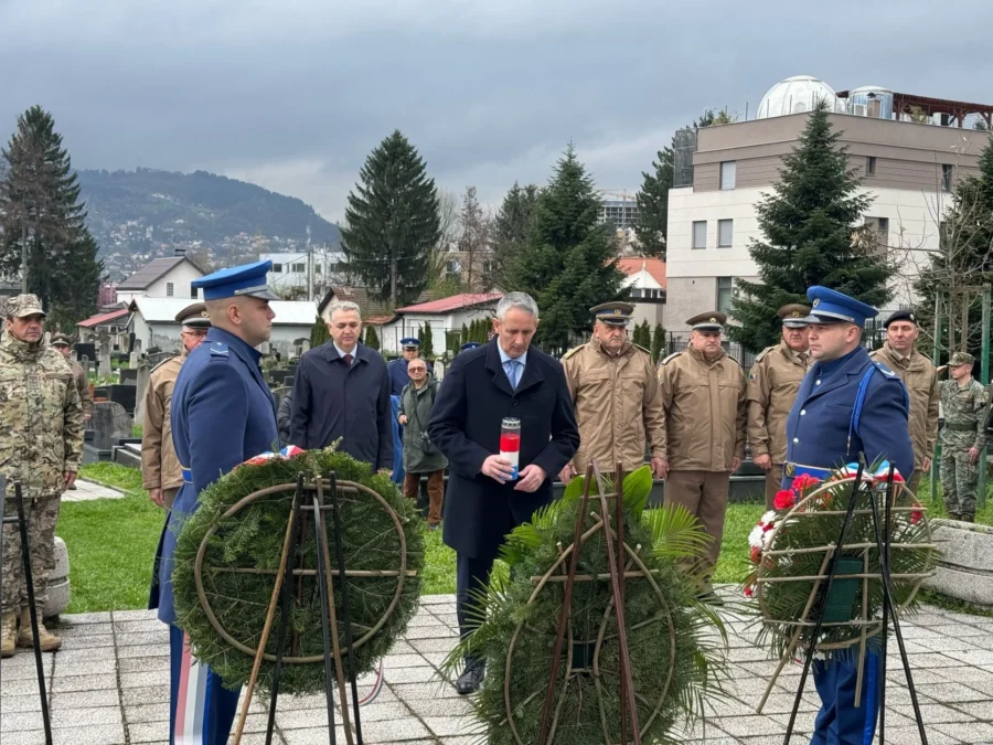 Izaslanstvo Ministarstva obrane i Oružanih snaga Bosne i Hercegovine, na čelu sa zamjenikom ministra obrane BiH za politiku i planove Slavenom Galićem u srijedu, 2. travnja 2025. godine, položilo je vijence na Rimokatoličkom groblju „Sveti Josip“ u Sarajevu, a u povodu obilježavanja 20. obljetnice utemeljenja 1. pješačke (gardijske) pukovnije OS BiH i 33. obljetnice utemeljenja Hrvatskoga vijeća obrane.