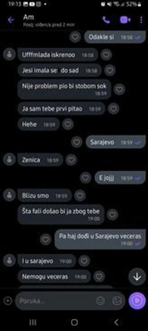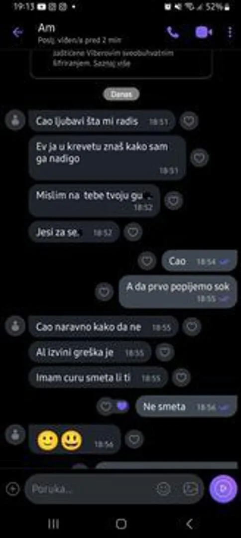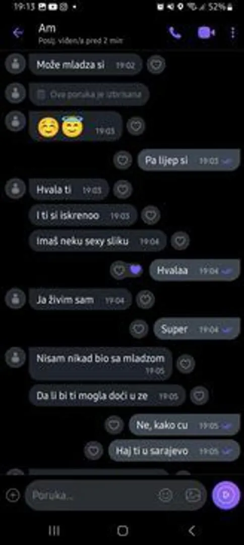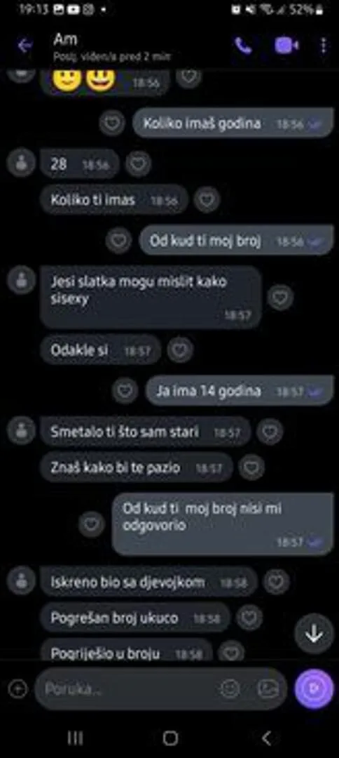Alihodžić je pokušao namamiti djevojčicu iz Sarajeva od 14 godina, a sreća je što je svome ocu rekla da je dobila poruke s nepoznatog broja na Viber, pa je dalju komunikaciju s njim vodio on. Tako da maloljetnica, srećom, nije morala da čita neprimjerene poruke.